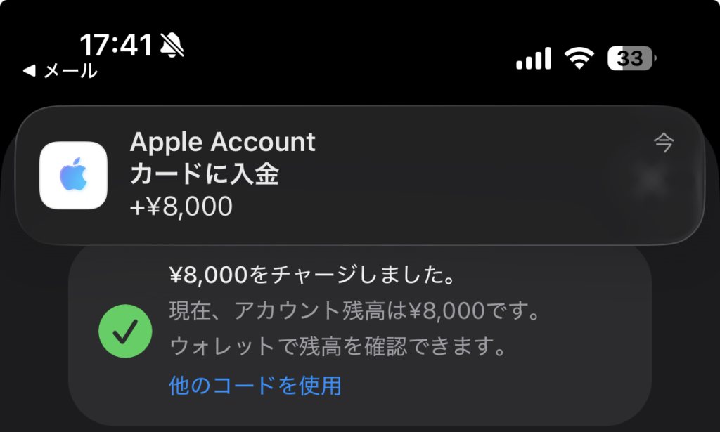 注文翌日にギフトカード(コード)がメールで届いたんだけど、