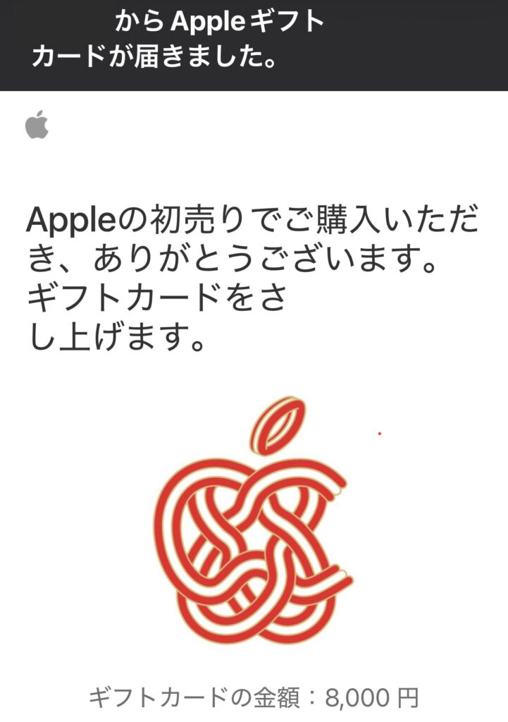 タイトルが「よしの様からAppleギフトカードが届きました」