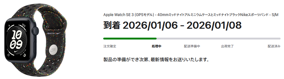 注文翌日未明:注文確定(1/6~1/8に届くよ)