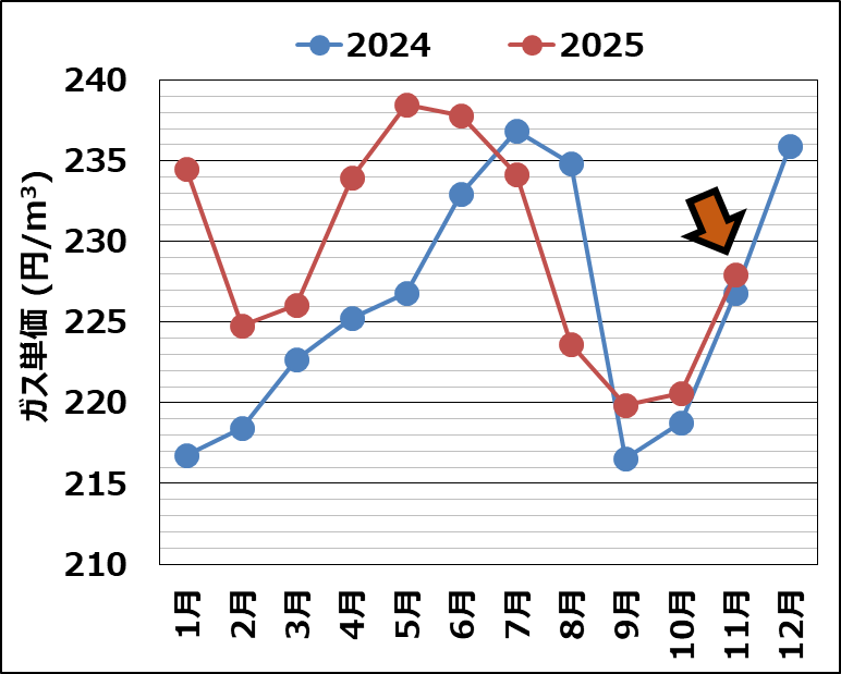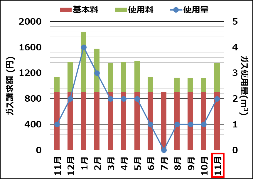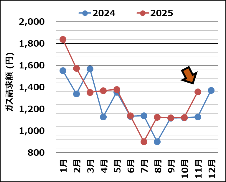 【2025年11月ガス代】寒くなると共に使用量が増えていく【1,357円】