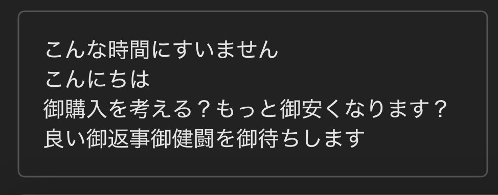即座にAさんから怪しい日本語で値下げ要求コメントがくる
