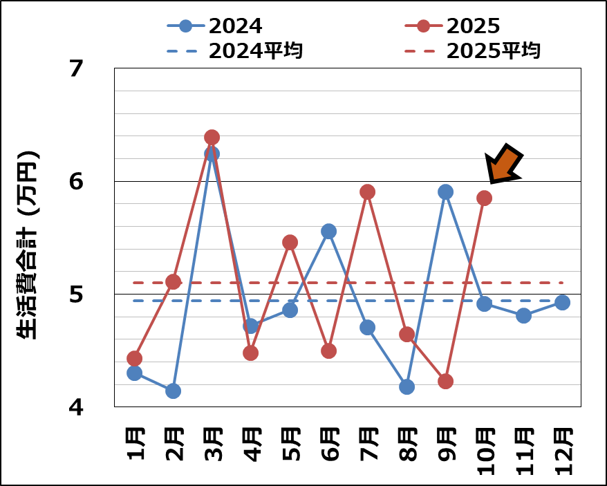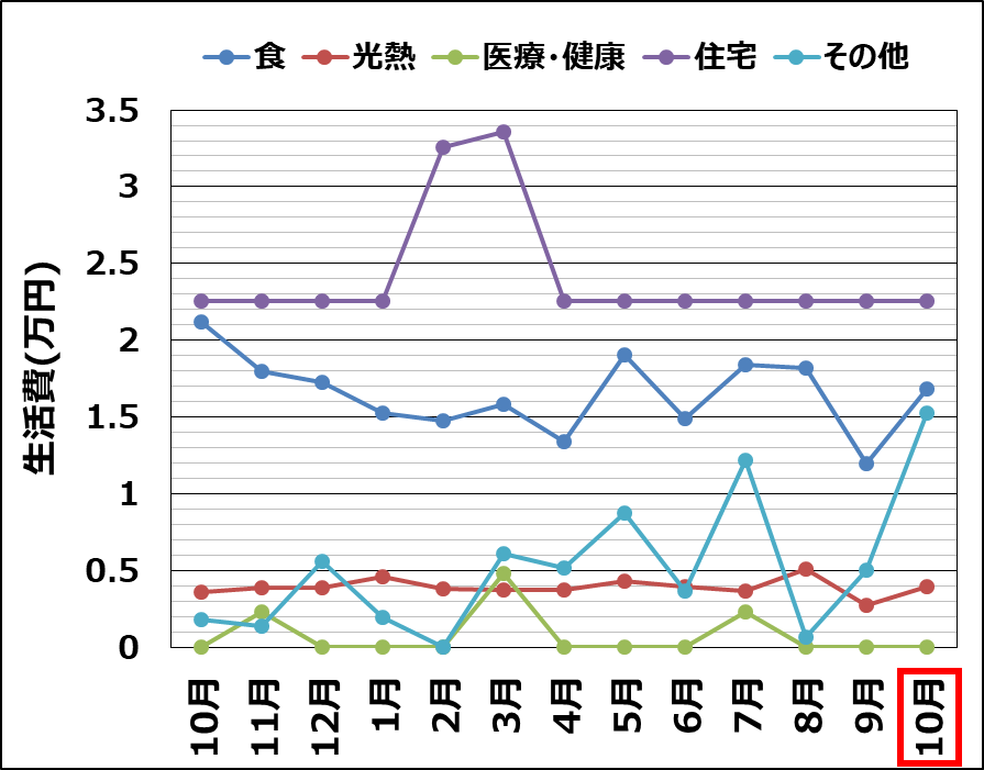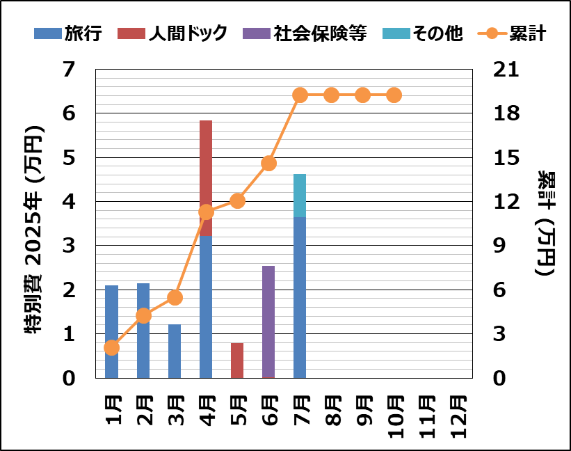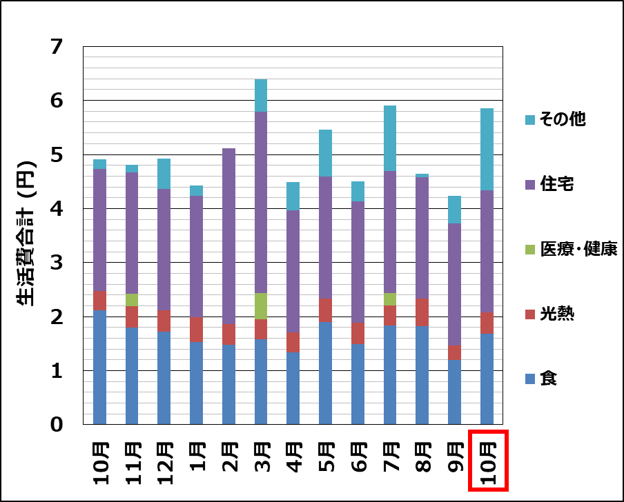 - 特別費:旅行代や人間ドック代等の不定期で高額な出費