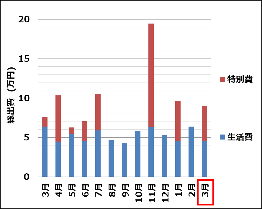 総出費(生活費+特別費)