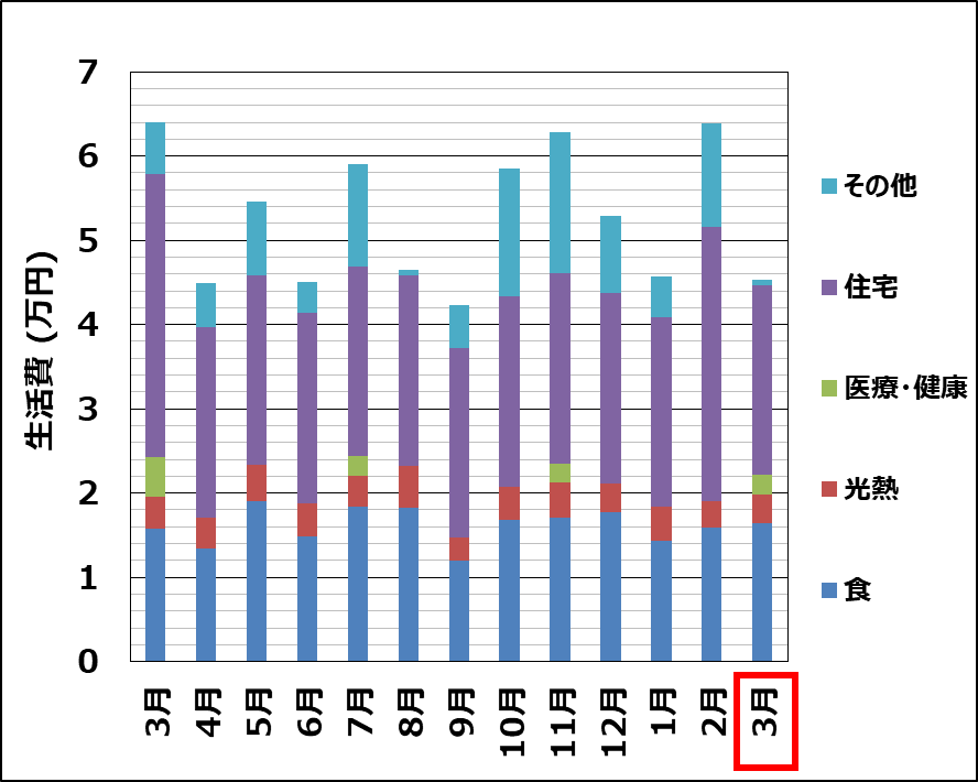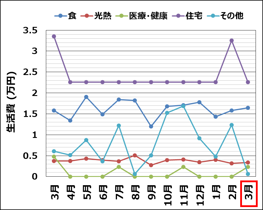および生活費の推移はこんな感じ↓。