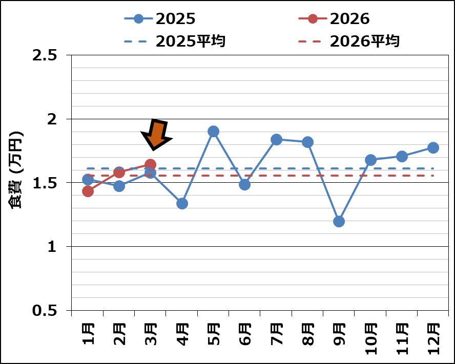 - 食費 :1.6万円