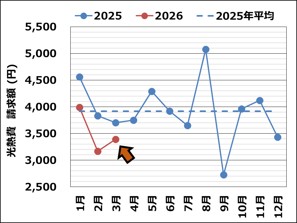 今月の光熱費は3,400円。