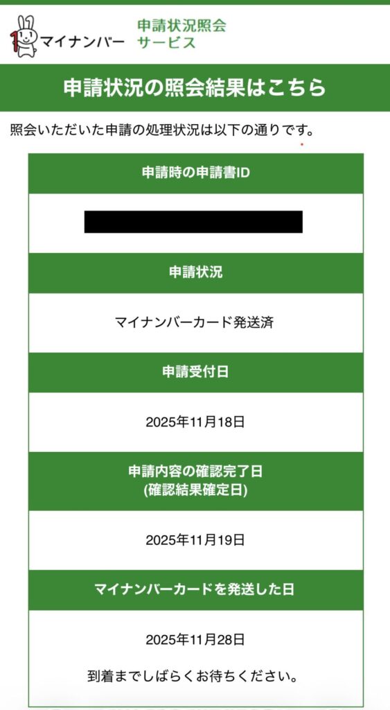 マイナンバーカードが発送されたのが