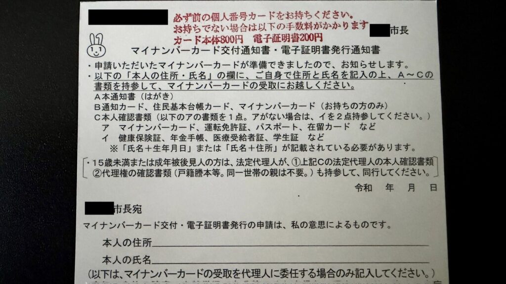 マイナンバーカード交付通知書・電子証明書発行通知書。