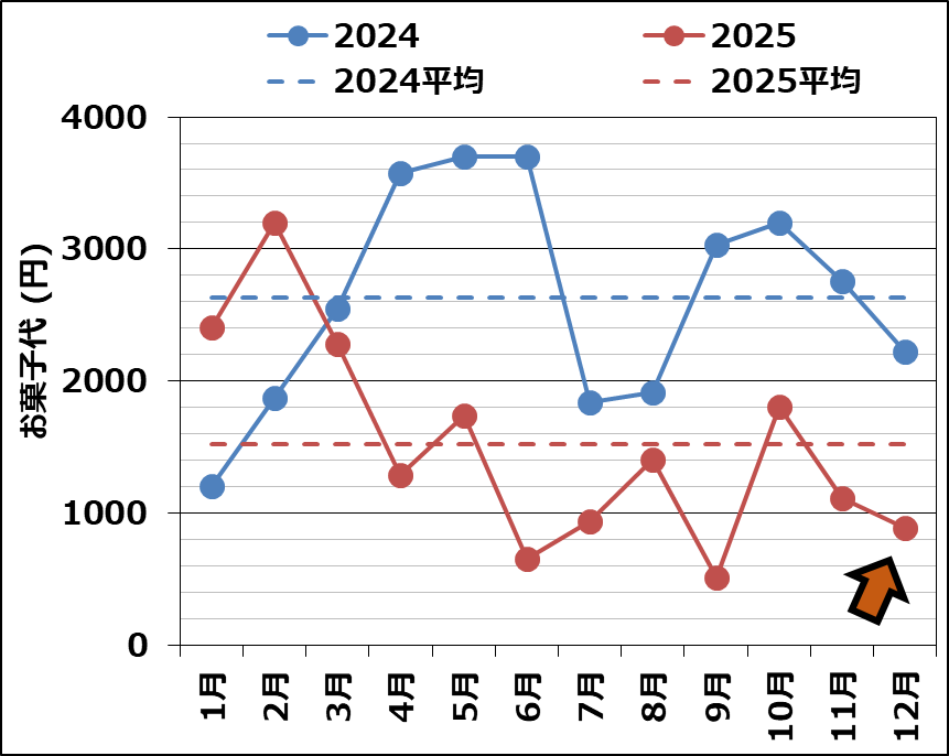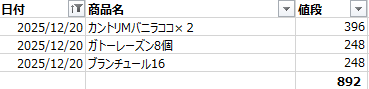 実質のお菓子代は 892*1.08*0.67=646円 のはず